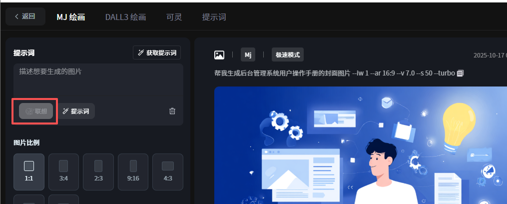 在门户网站的AI绘画功能中,提示词联想功能需要开启配置才能正常使用。